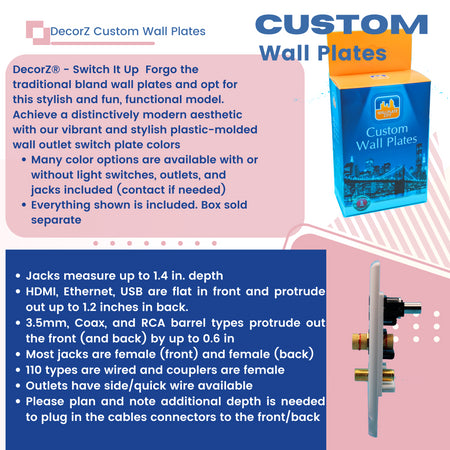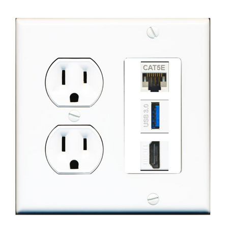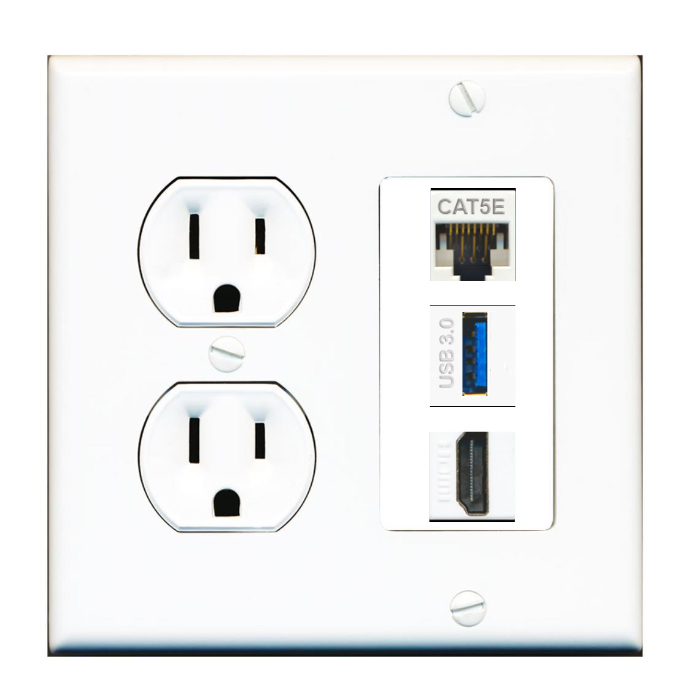 Simple female to female plug in connection. This item comes in a thermoplastic finish and screws are included. It's a simple and effective way to organize your cables. Wall plate fits standard U.S. outlet boxes and drywall brackets.