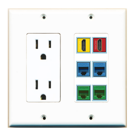 Simple female to female plug in connection. This item comes in a thermoplastic finish and screws are included. It's a simple and effective way to organize your cables. Wall plate fits standard U.S. outlet boxes and drywall brackets.
