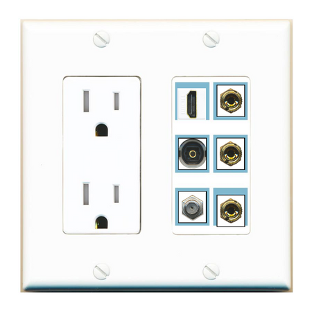 6 Port Custom Keystone Wall Plate with Tamper Resistant DecorZ Power Outlet