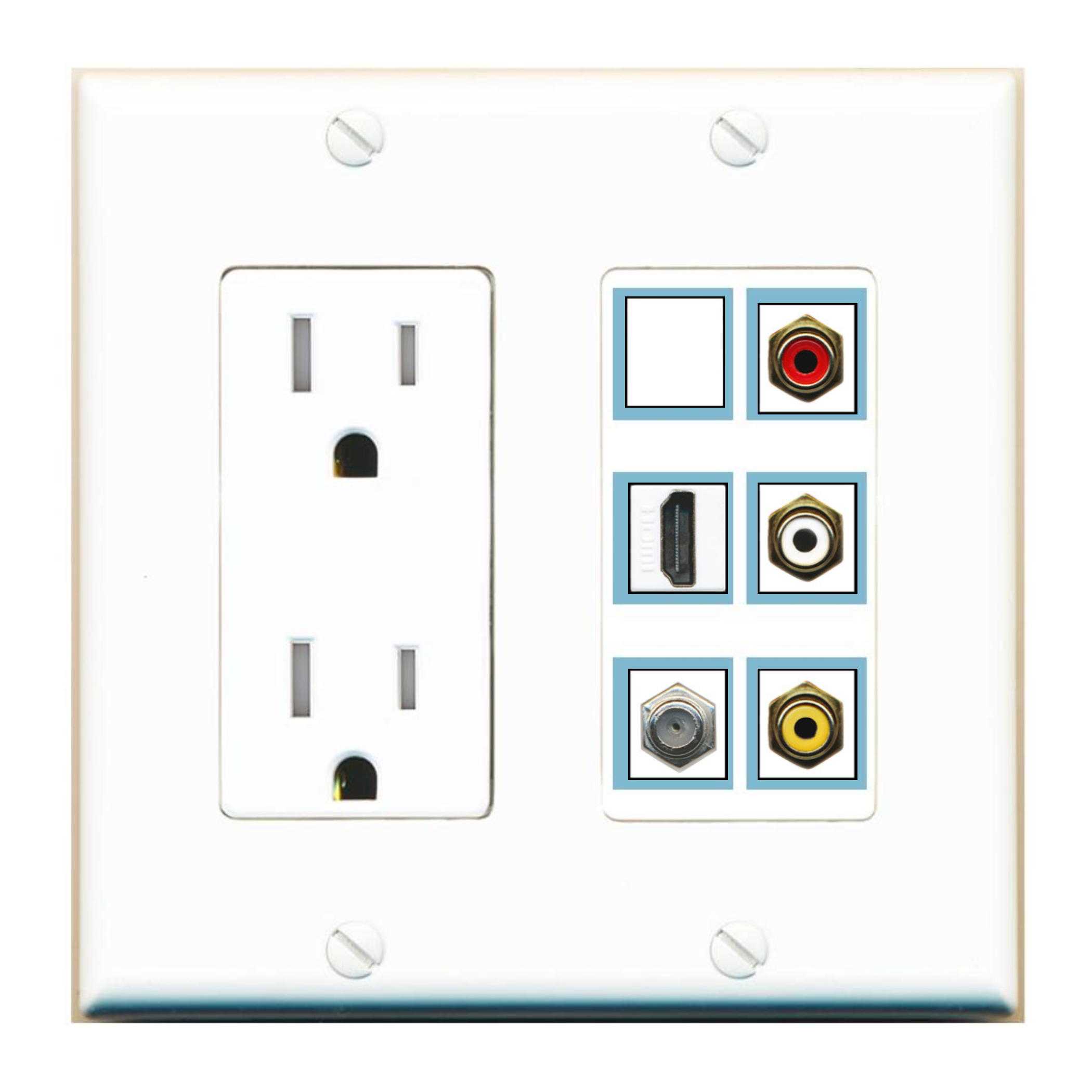 6 Port Custom Keystone Wall Plate with Tamper Resistant DecorZ Power Outlet