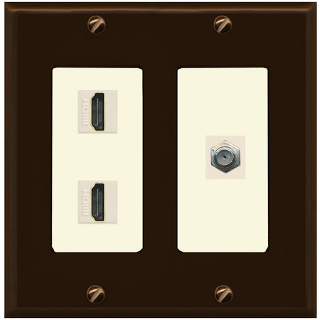 COAX 2 HDMI Wall Plate-2 Gang Brown/Light-Almond