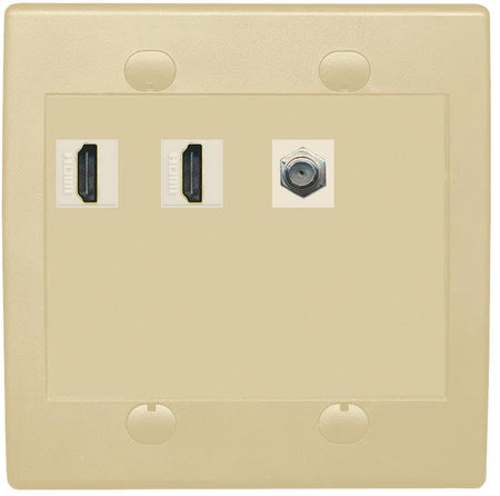 Coax 2 HDMI Wall Plate-Flat 2 Gang Ivory/Ivory