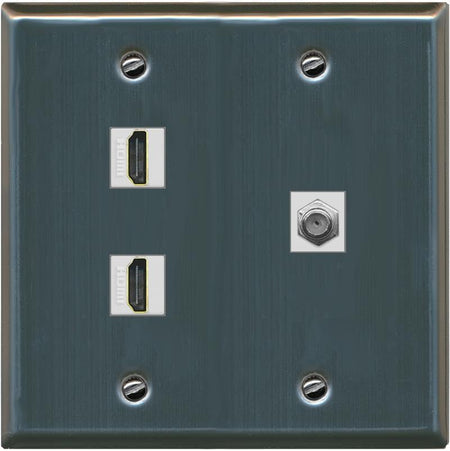 COAX 2 HDMI Wall Plate-Flat 2 Gang Stainless Steel