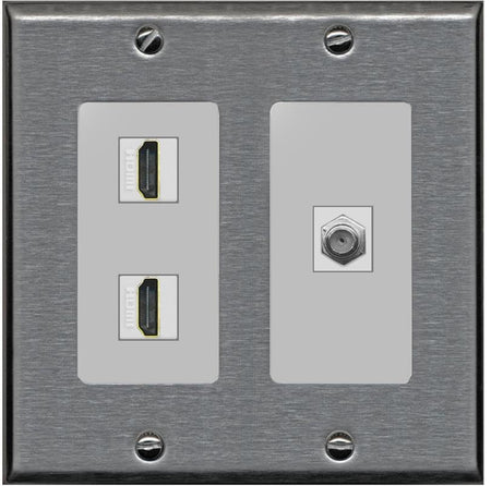 COAX 2 HDMI Wall Plate-2 Gang Stainless/Gray