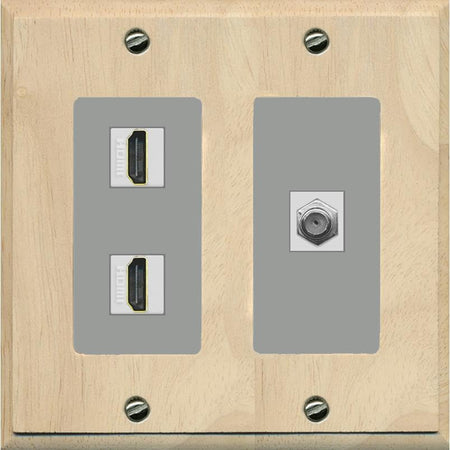 Coax 2 HDMI Wall Plate-2 Gang Wood/Gray