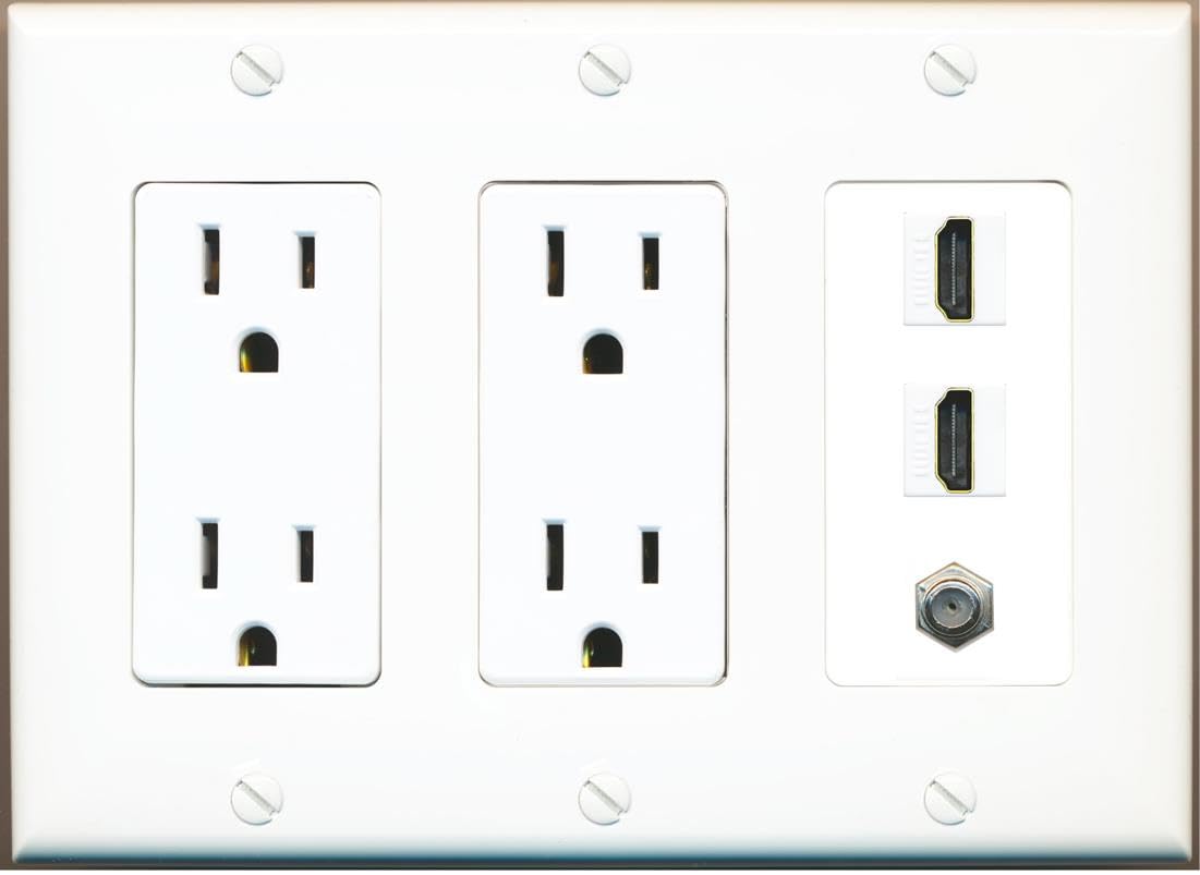 COAX 2 HDMI Wall Plate-2 Outlet White