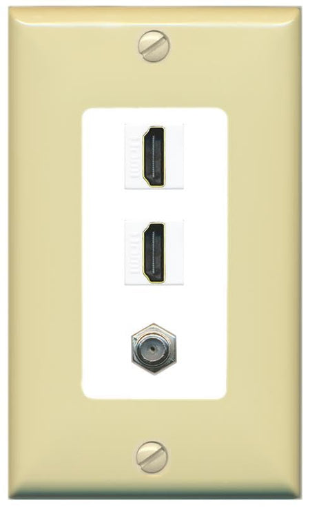 Coax 2 HDMI Wall Plate-1 Gang Ivory/White