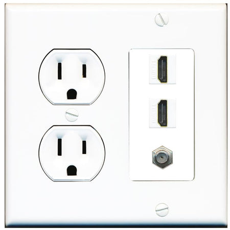 COAX 2 HDMI Wall Plate-Round Outlet White