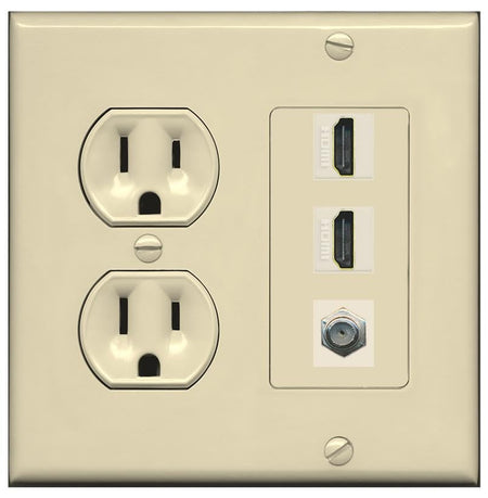 Coax 2 HDMI Wall Plate-Round Outlet Ivory/Ivory