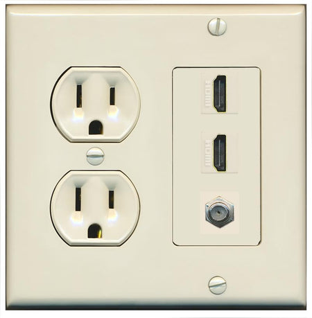Coax 2 HDMI Wall Plate-Round Outlet Light-Almond