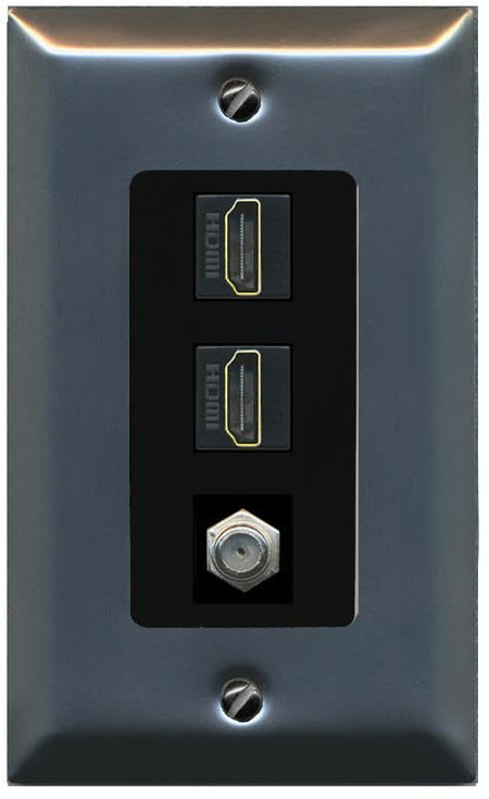 Coax 2 HDMI Wall Plate-1 Gang Stainless/Black