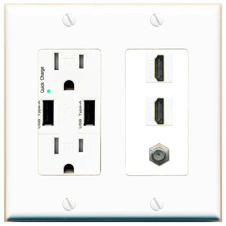 COAX 2 HDMI Wall Plate-USB Charger White