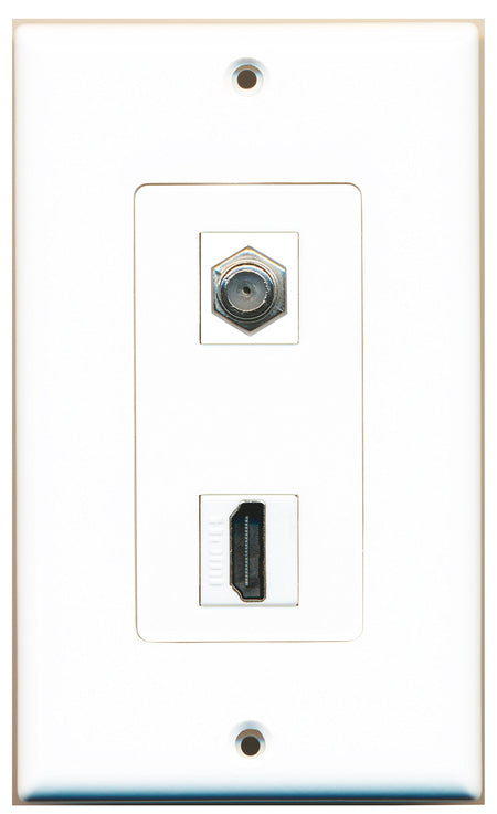 RiteAV 1 Port HDMI 1 Port Coax Port Cable TV F Type Wall Plate OVERSIZED White