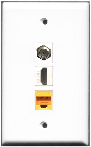 RiteAV - 1 Port HDMI and 1 Port Coax Cable TV- F-Type and 1 Port Cat5e Ethernet Yellow Wall Plate