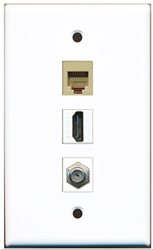 RiteAV - 1 Port HDMI and 1 Port Coax Cable TV- F-Type and 1 Port Phone RJ11 RJ12 Beige Wall Plate